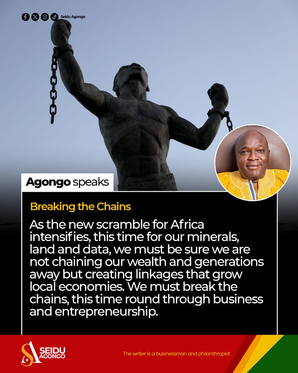 The article concludes that Africa must break economic chains through business and entrepreneurship, ensuring that the new scramble for Africa benefits local communities and future generations. Agongo calls for unity, putting Africa’s interests above party politics, and creating industrial policies that outlive governments. He emphasizes that national priorities should not change with every election cycle, and that Africa must take control of its economic destiny.
