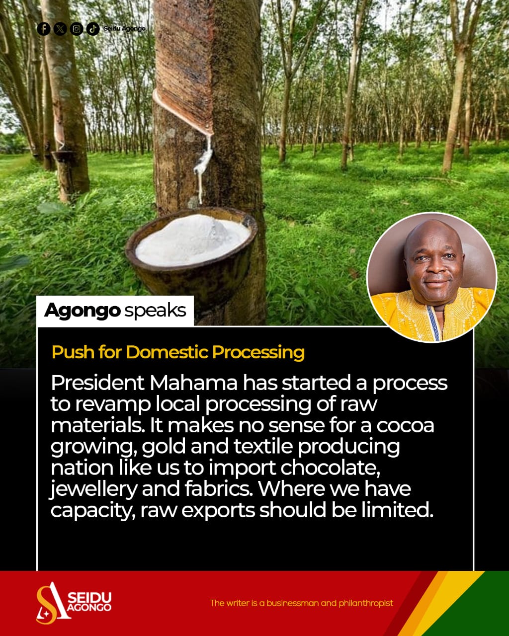 The writer urges Ghana and Africa to ask harsh questions about their economic models and prioritize domestic processing, industrialization, and local entrepreneurship. He cites examples of countries like Zimbabwe, Guinea, and Gabon mandating local processing of raw materials, and China’s rise through industrialization. Hon. Agongo notes that no nation can grow its way out of poverty without industrialization, emphasizing the need for Africa to add value to its raw materials.