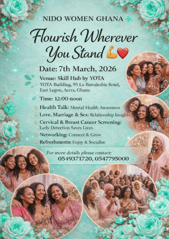 NIDO Women Ghana Chapter is thrilled to invite women in Accra to a special International Women’s Day celebration on March 7, 2026, at 12:30pm at Skills Hub, YOTA Building, East Legon. This event promises to be an unforgettable experience, with engaging discussions, health screenings, and networking opportunities that will leave you feeling inspired and empowered.